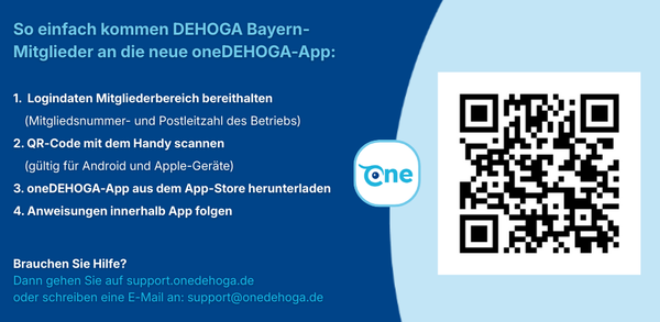 - KI-Chat: Geprüfte Antworten aus der DEHOGA-Welt – plus passende Dokumente/Downloads (z. B. Vorlagen, Muster, Hinweise).